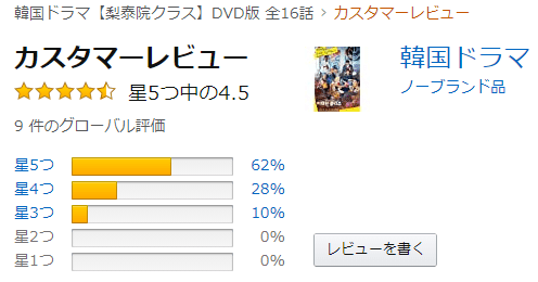レビュー統計:アマゾンプライムカスタマーレビュー9件の評価は星5つ67%、星4つ28%、星3つ10%、星2つ0%、星1つ0%。